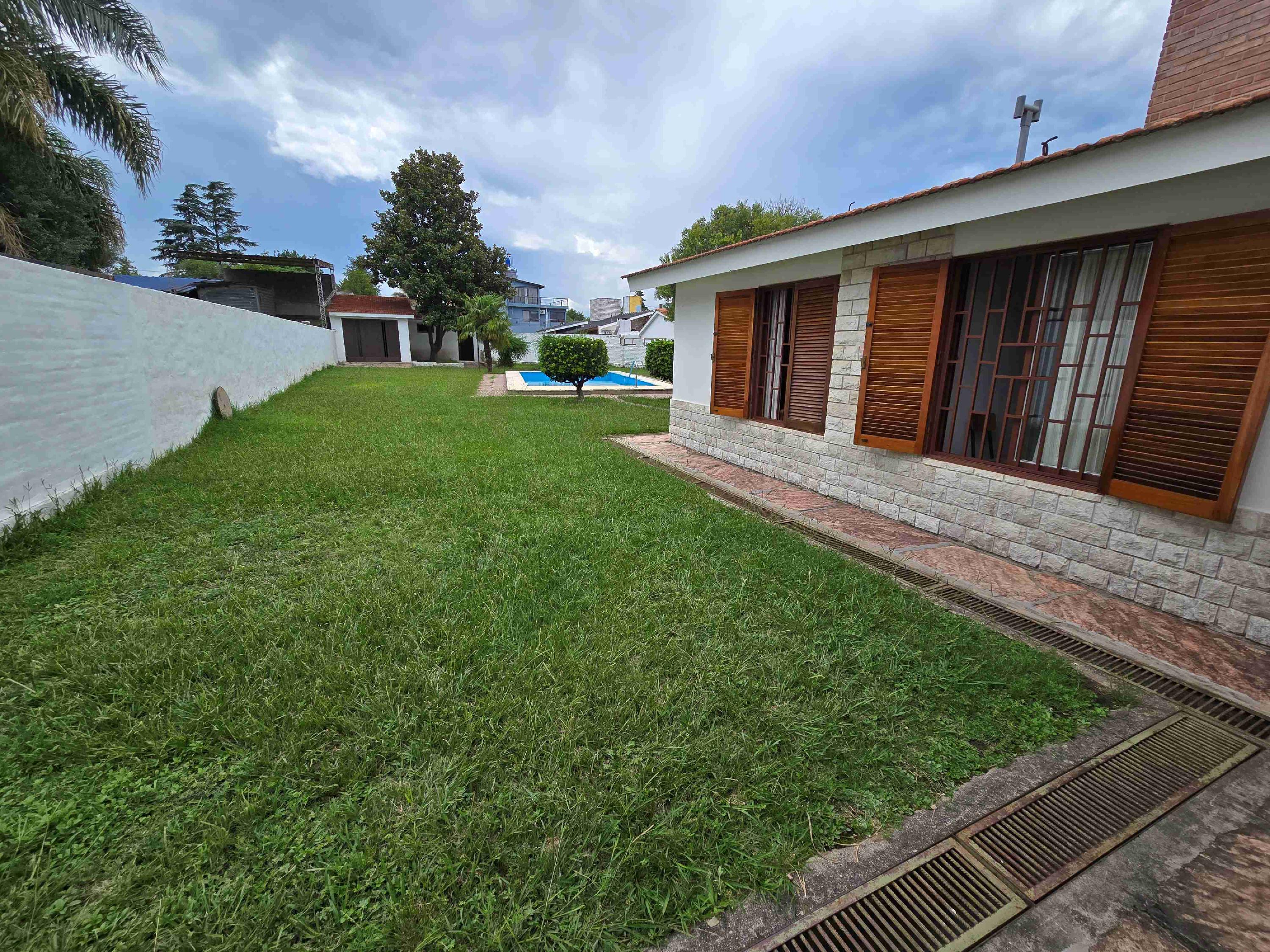 Dicha casa, esta distribuída en una sola planta, cuenta con parque al frente, una cochera techada pasante, que nos lleva al parque trasero, en donde se ubica una hermosa piscina, garage cerrado, cuarto de herramientas y baño de servicio. Suma además un asador. Por el frente, en la entrada principal, el Ingreso nos que lleva al living comedor a la derecha y a un living de estar a la izquierda; presenta cocina separada, lavadero interno, un pasillo que comunica a 2 dormitorios con placard ( el principal con baño en suite), suma además un 2do baño completo con ducha.